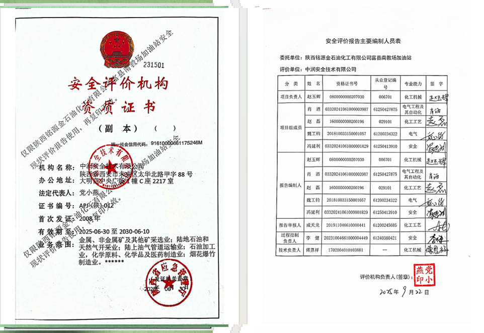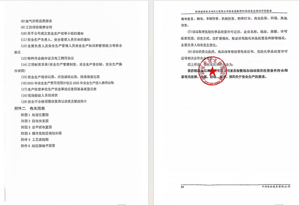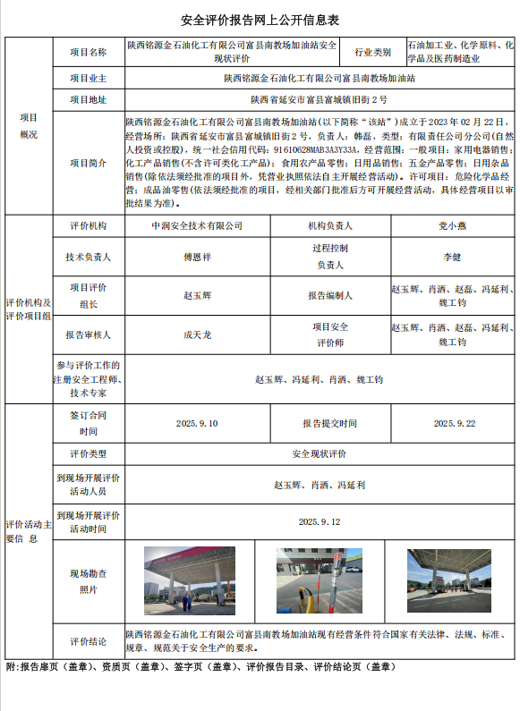 陕西铭源金石油化工有限公司富县南教场加油站安全现状评价