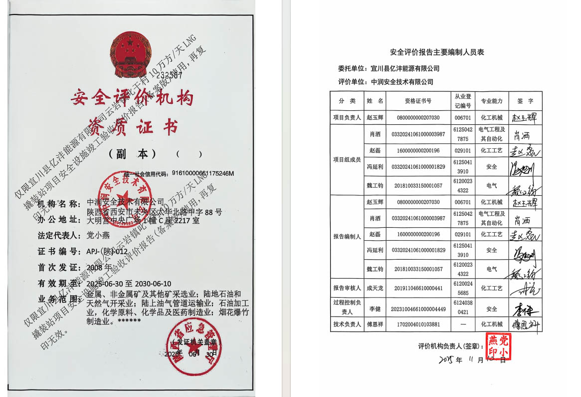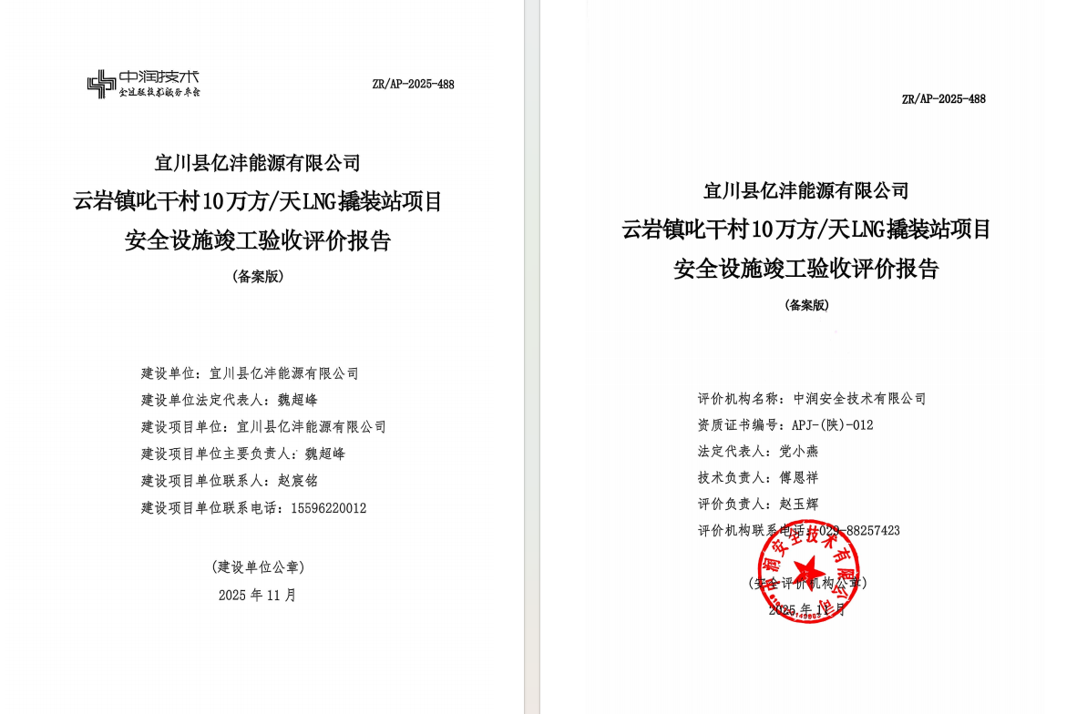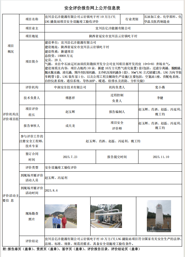 宜川县亿沣能源有限公司云岩镇叱干村 10 万方/天 LNG 撬装站项目安全设施竣工验收评价