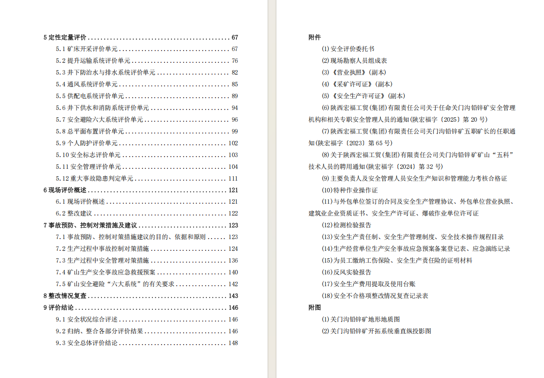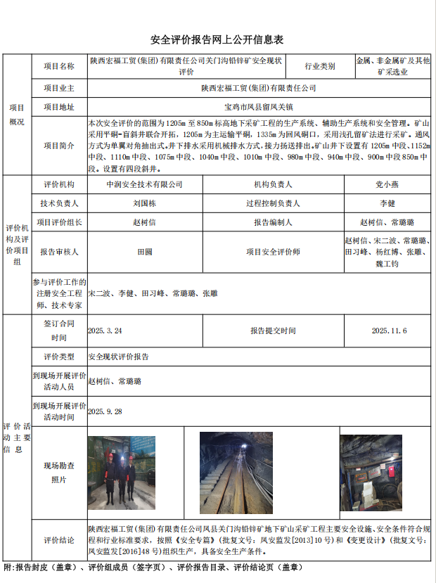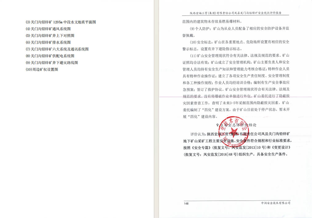 陕西宏福工贸(集团)有限责任公司关门沟铅锌矿安全现状 评价