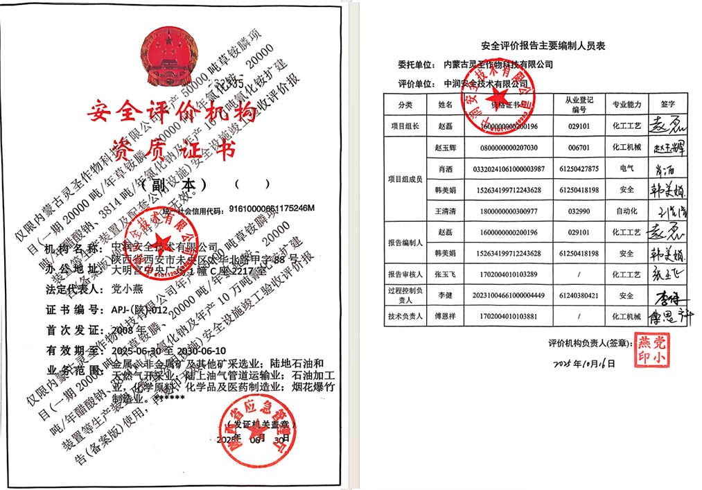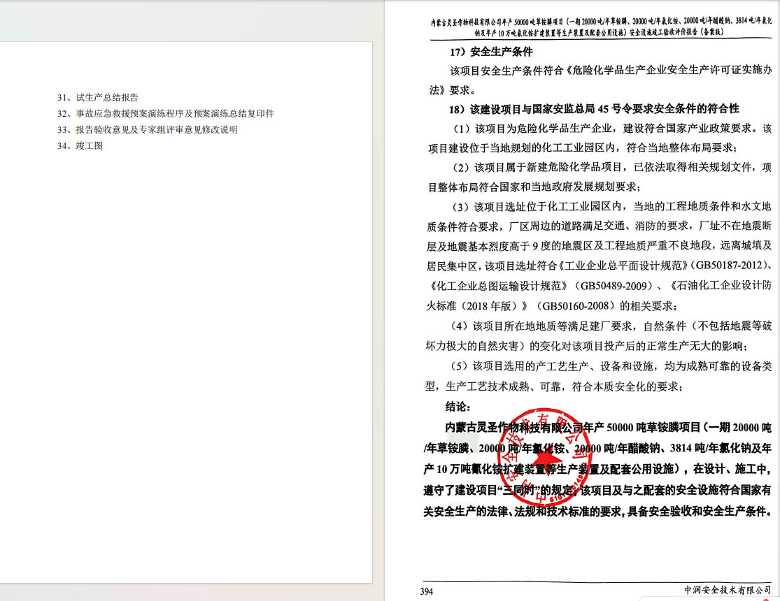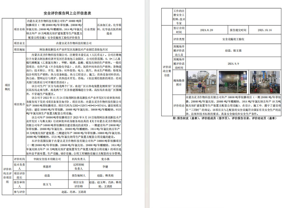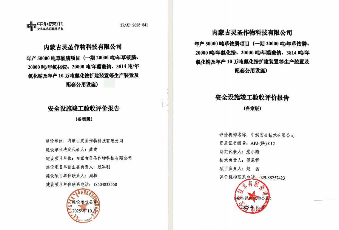 内蒙古灵圣作物科技有限公司年产 50000 吨草 铵膦项目(一期 20000 吨/年草铵膦、20000 吨/ 年氯化铵、20000 吨/年醋酸钠、3814 吨/年氯化 钠及年产 10 万吨氰化铵扩建装