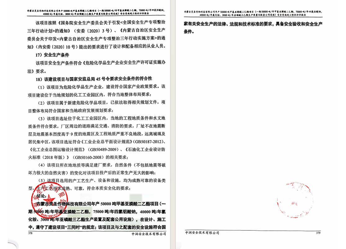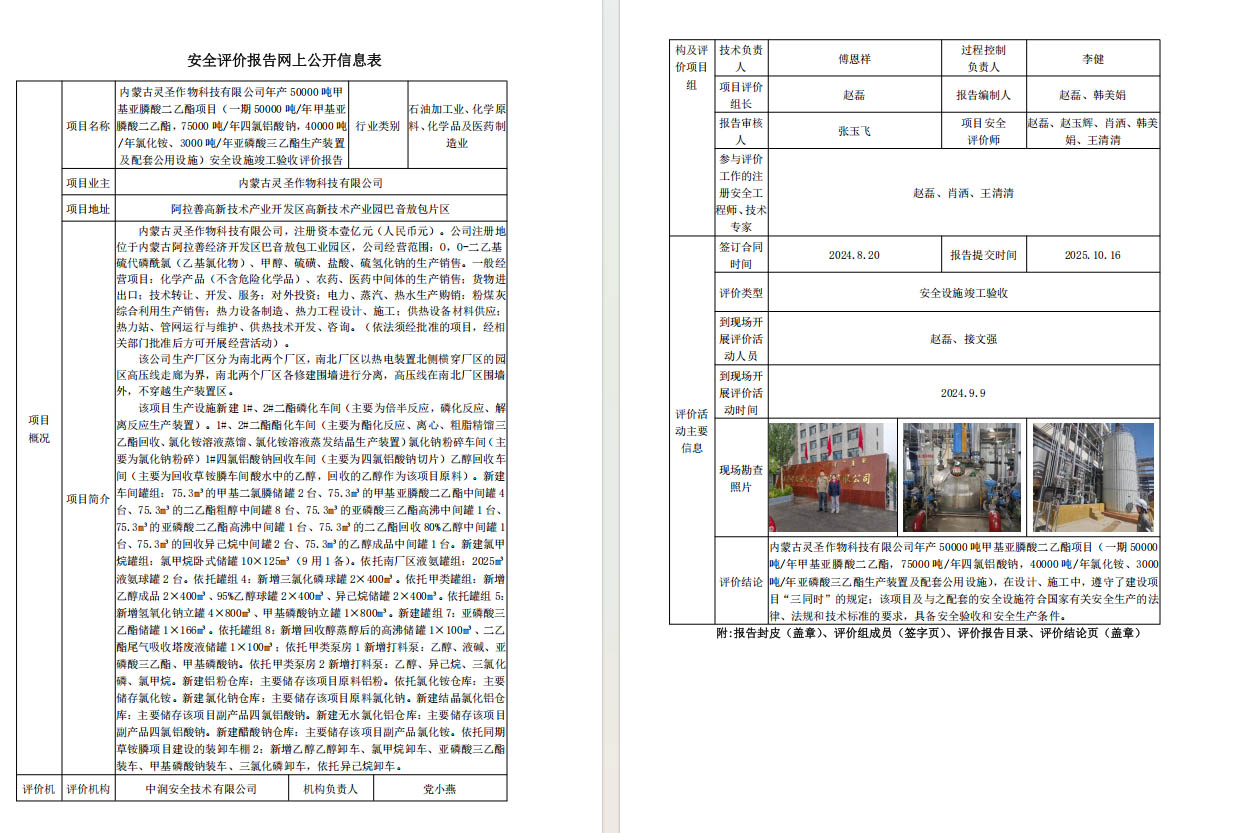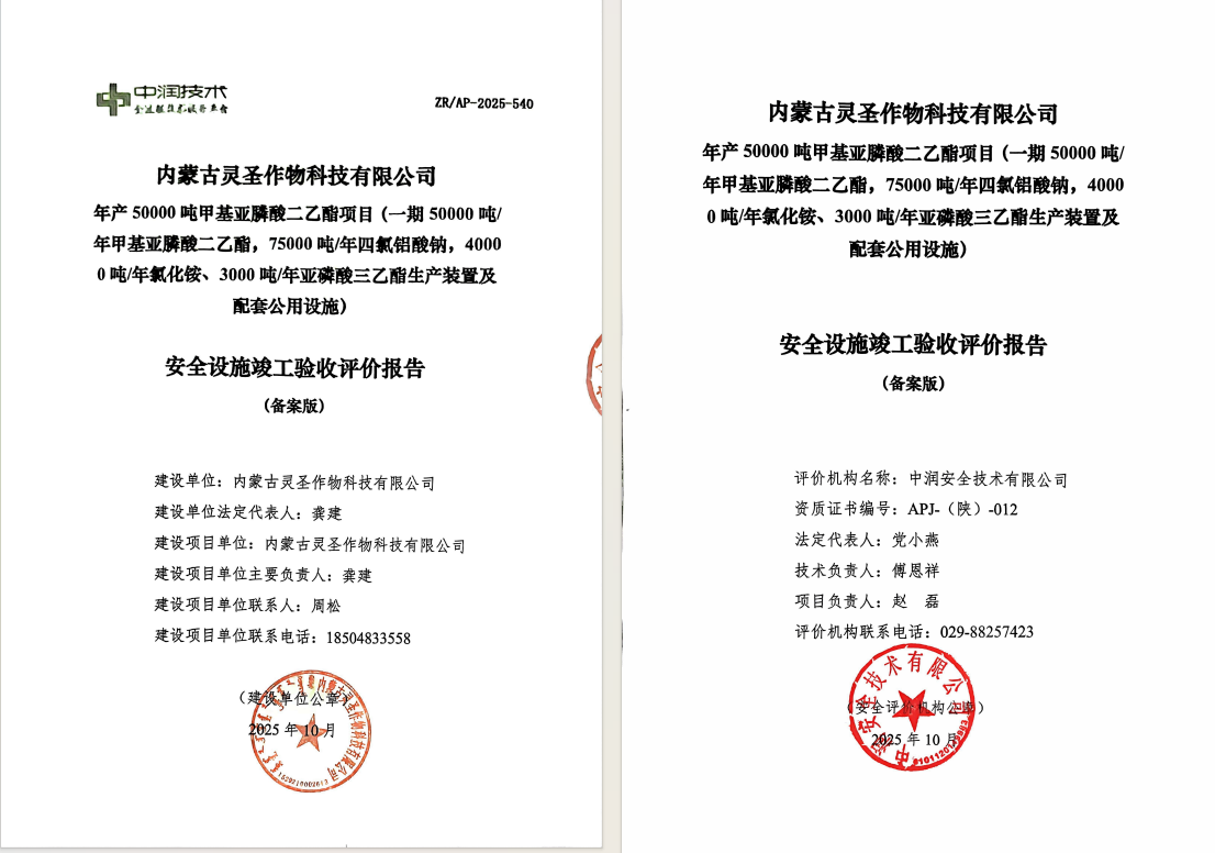 内蒙古灵圣作物科技有限公司年产 50000 吨甲 基亚膦酸二乙酯项目(一期 50000 吨/年甲基亚 膦酸二乙酯,75000 吨/年四氯铝酸钠,40000 吨 /年氯化铵、3000 吨/年亚磷酸三乙酯