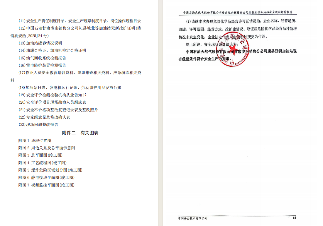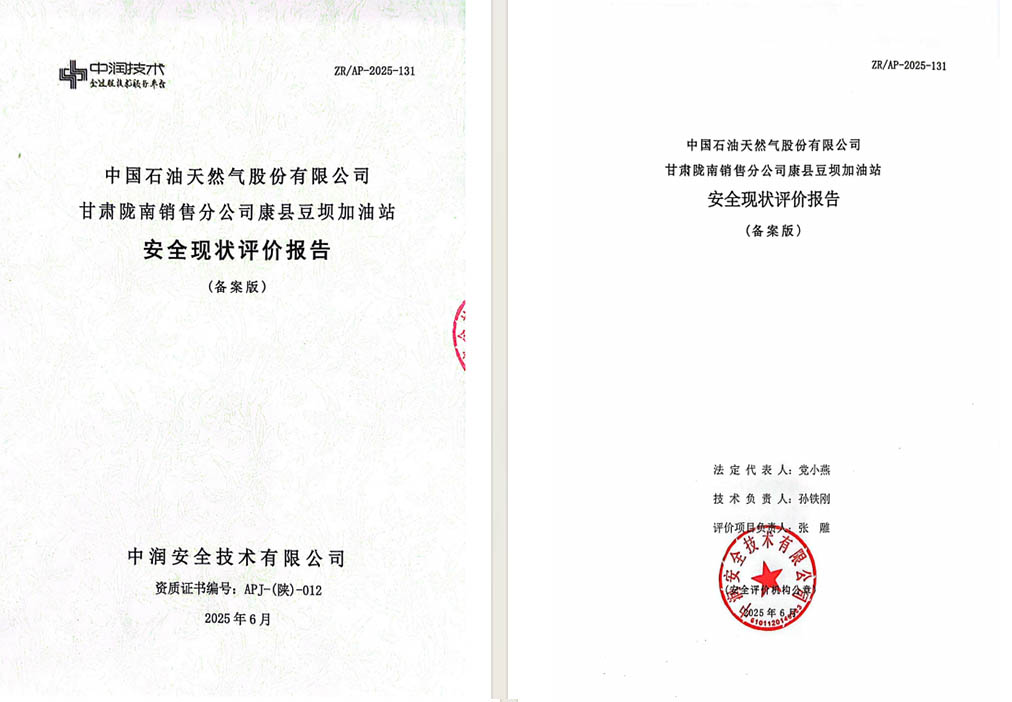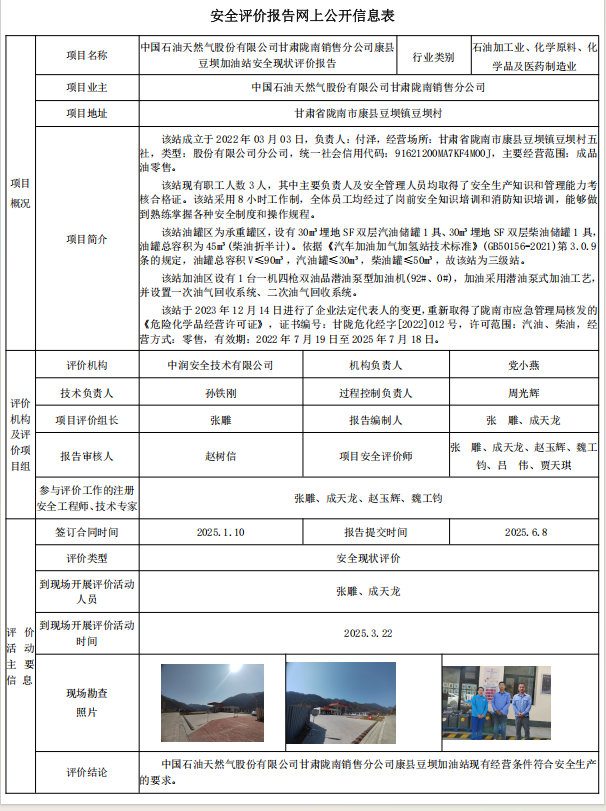 中国石油天然气股份有限公司甘肃陇南销售分公司康县 豆坝加油站安全现状评价报告