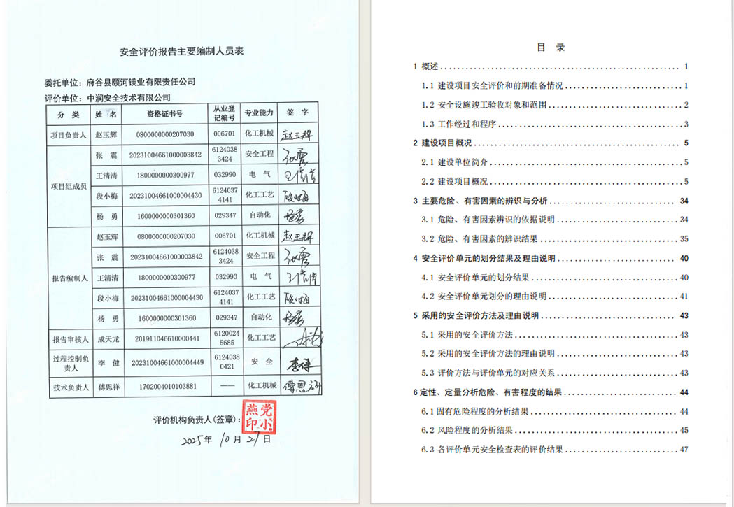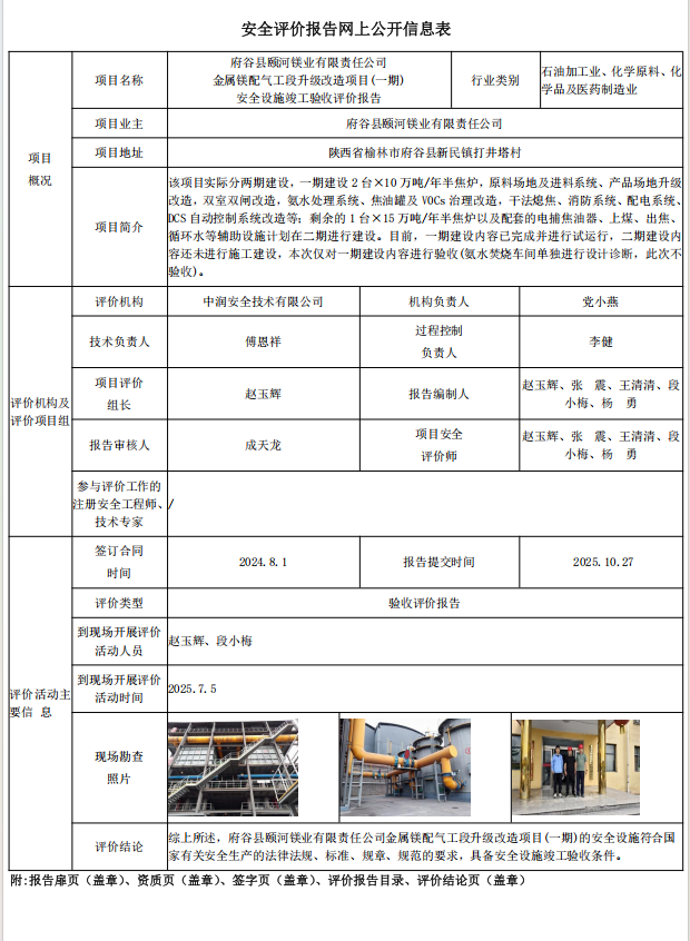 府谷县颐河镁业有限责任公司 金属镁配气工段升级改造项目(一期) 安全设施竣工验收评价报告