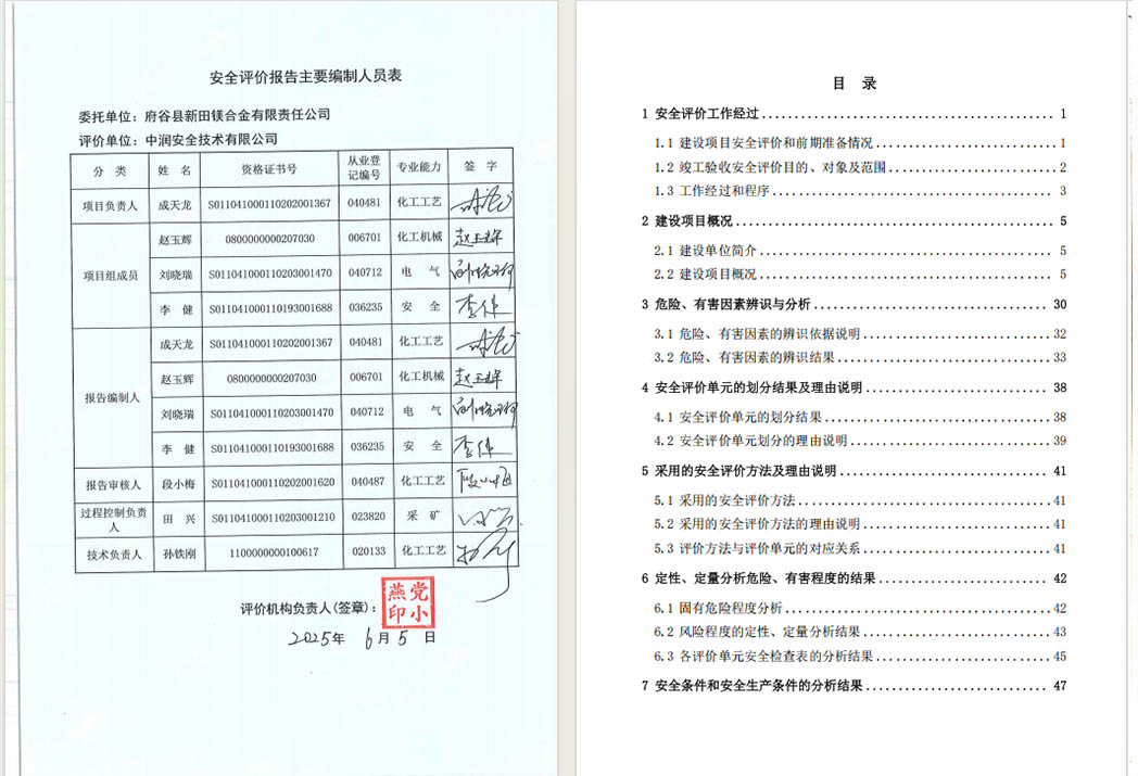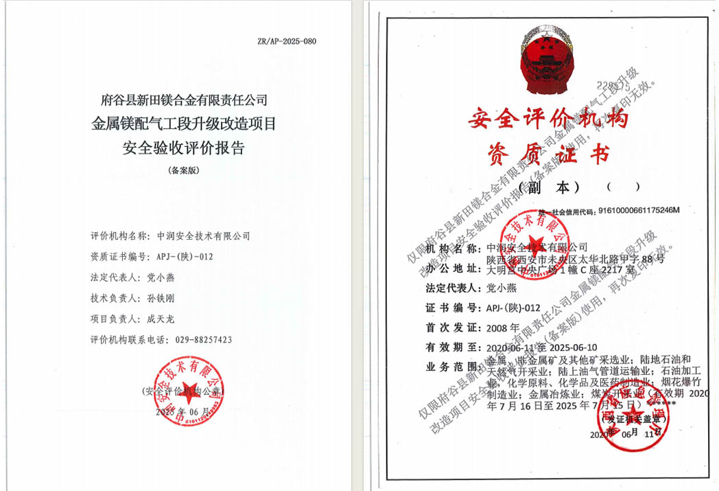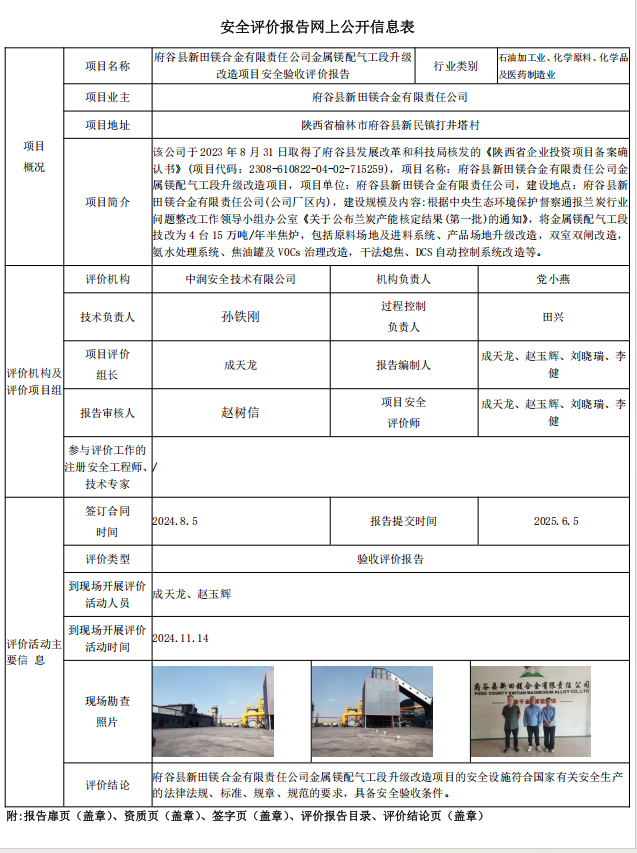 府谷县新田镁合金有限责任公司金属镁配气工段升级改造项目安全验收评价报告