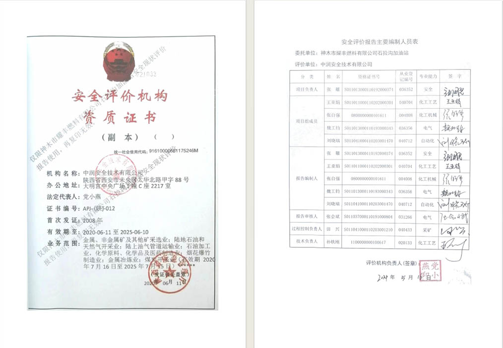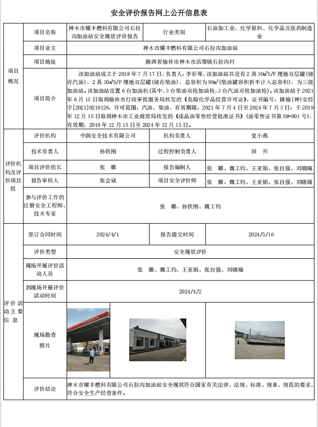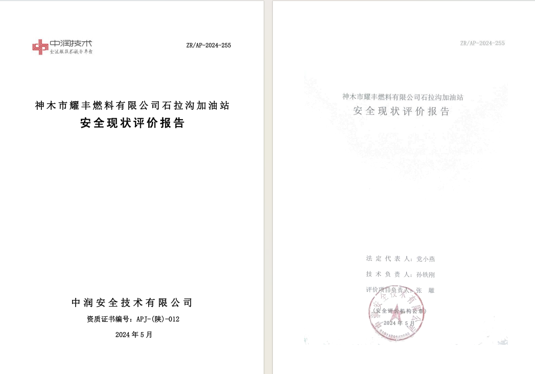 神木市耀丰燃料有限公司石拉沟加油站安全现状评价报告