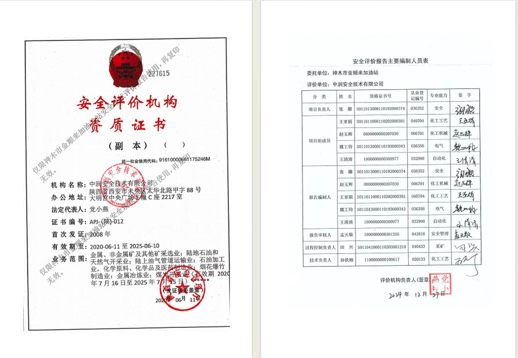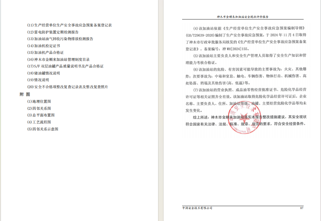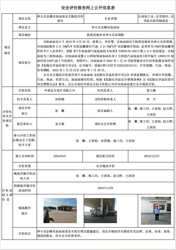 神木市金顺来加油站安全现状评价报告