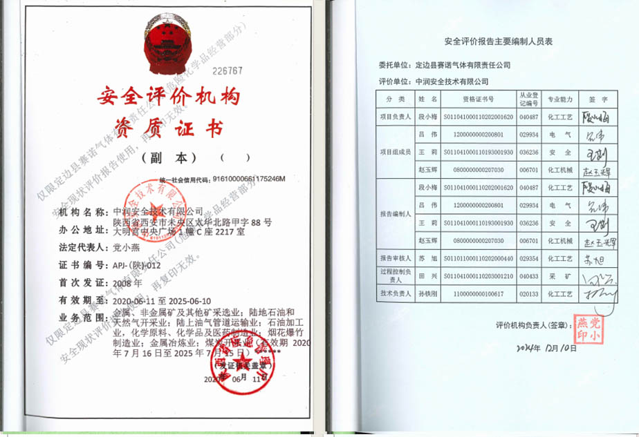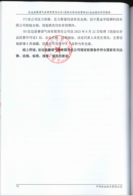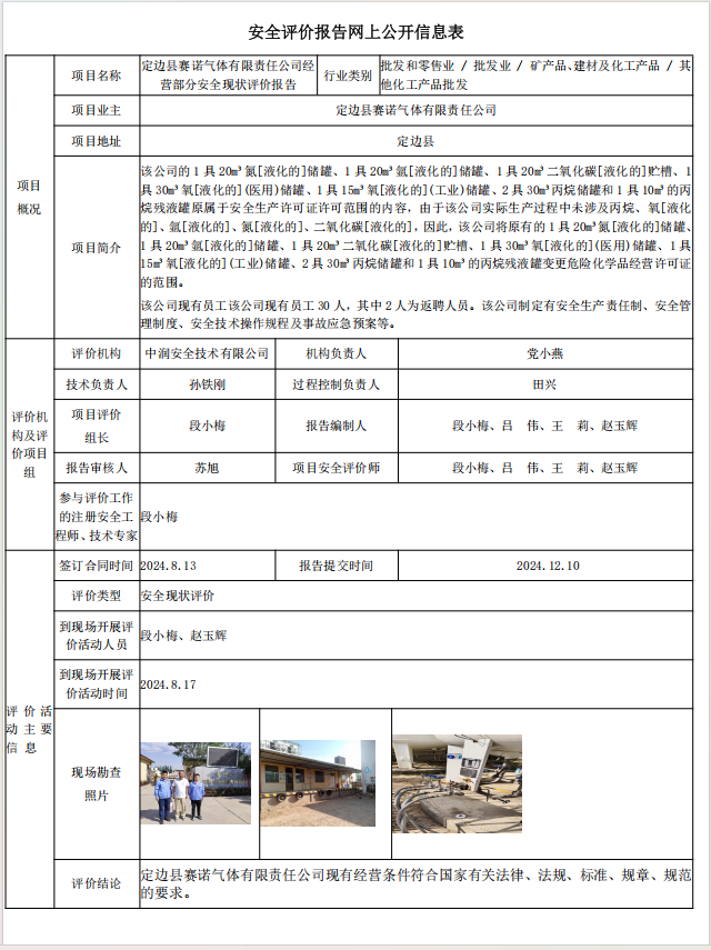 定边县赛诺气体有限责任公司经营部分安全现状评价报告