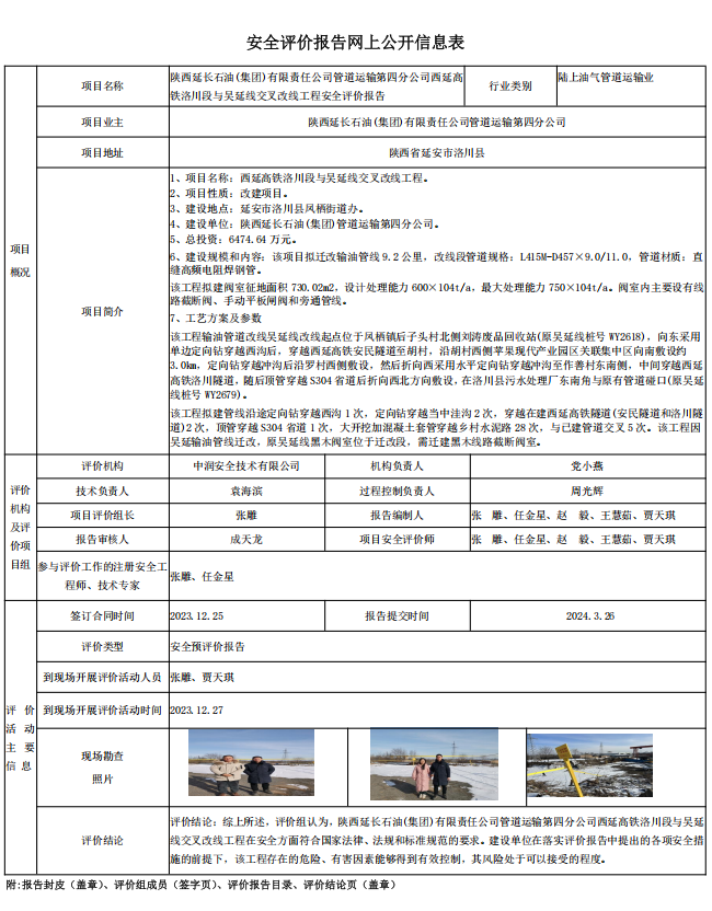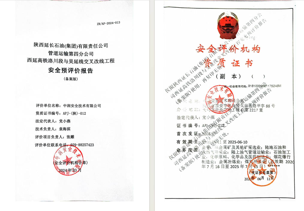 陕西延长石油(集团)有限责任公司管道运输第四分公司西延高 铁洛川段与吴延线交叉改线工程安全评价报告