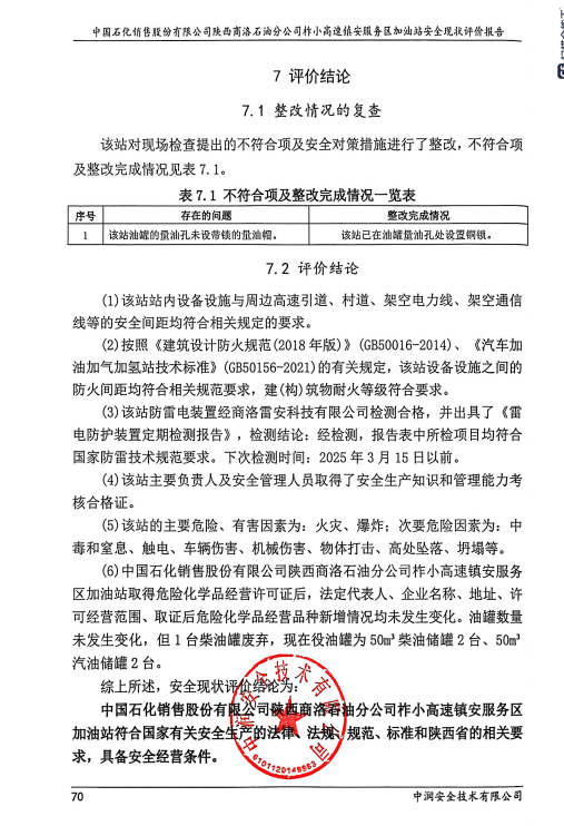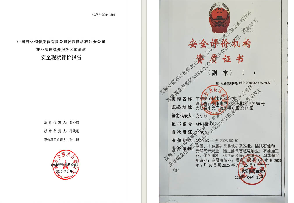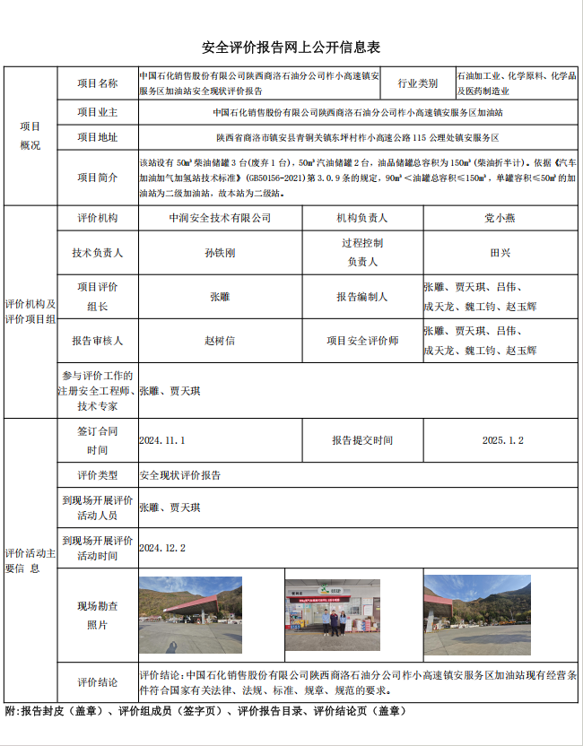 中国石化销售股份有限公司陕西商洛石油分公司柞小高速镇安服务区加油站安全现状评价报告