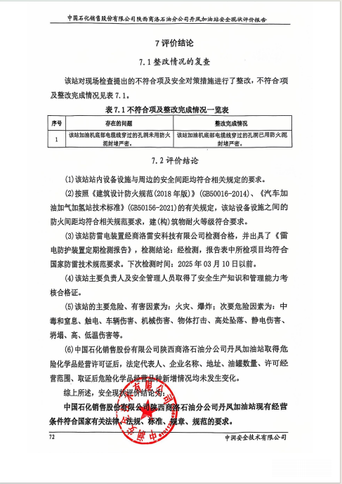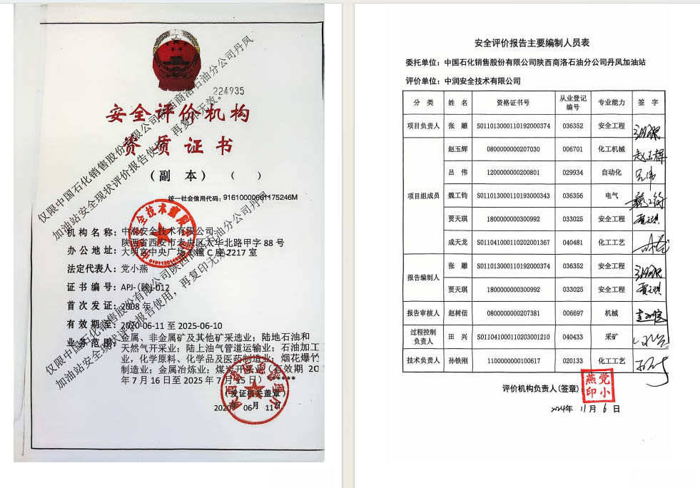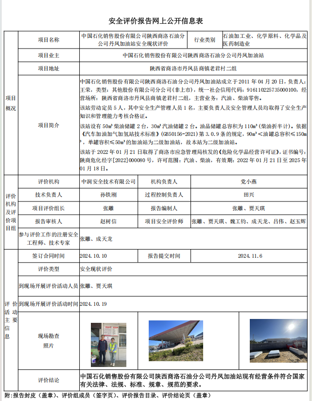 中国石化销售股份有限公司陕西商洛石油分公司丹凤加油站安全现状评价