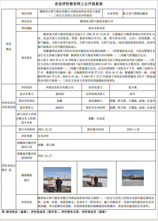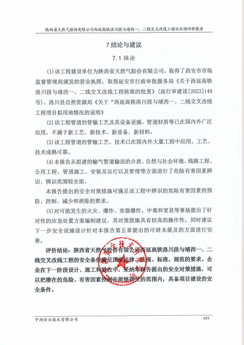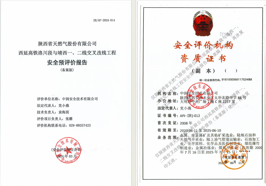 陕西省天然气股份有限公司西延高铁洛川段与靖西一、二线交叉改线工程安全评价报告