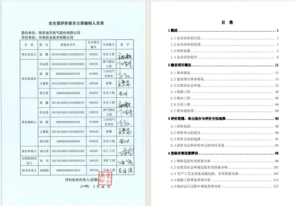 陕西省天然气股份有限公司西安分公司尚稷路占压靖西..、二线天然气管道迁改工程安全评价报告