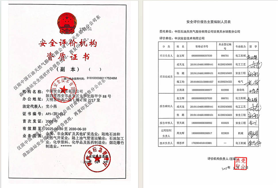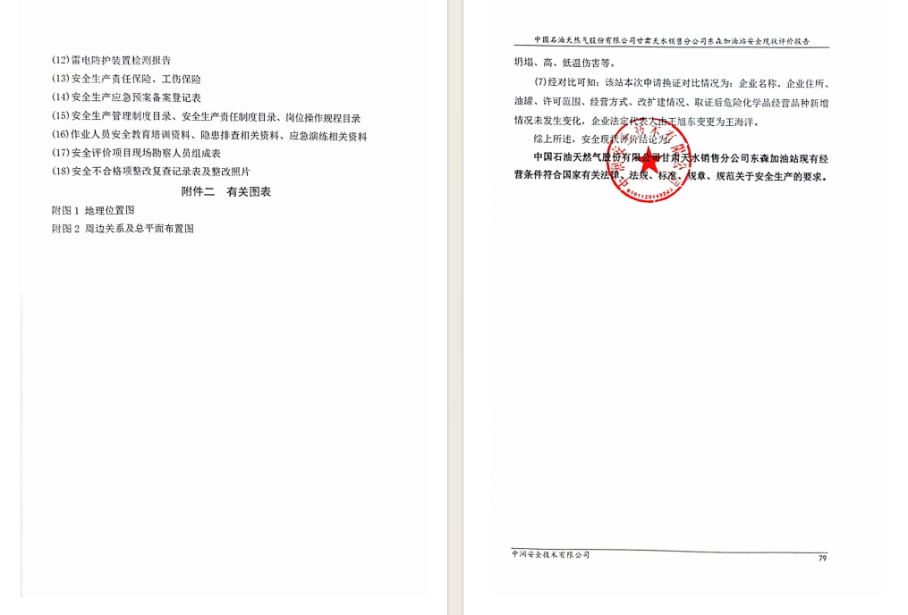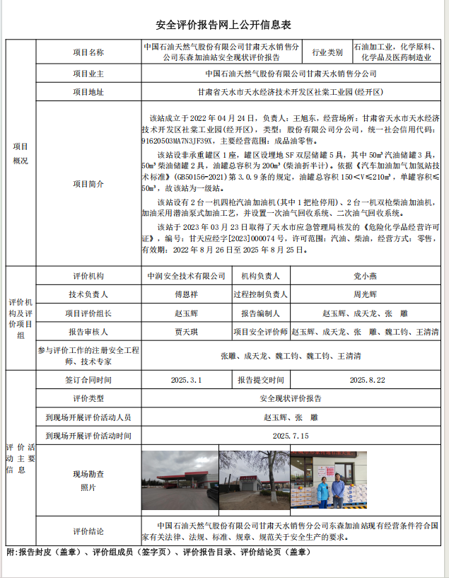 中国石油天然气股份有限公司 甘肃天水销售分公司东森加油站 安全现状评价报告