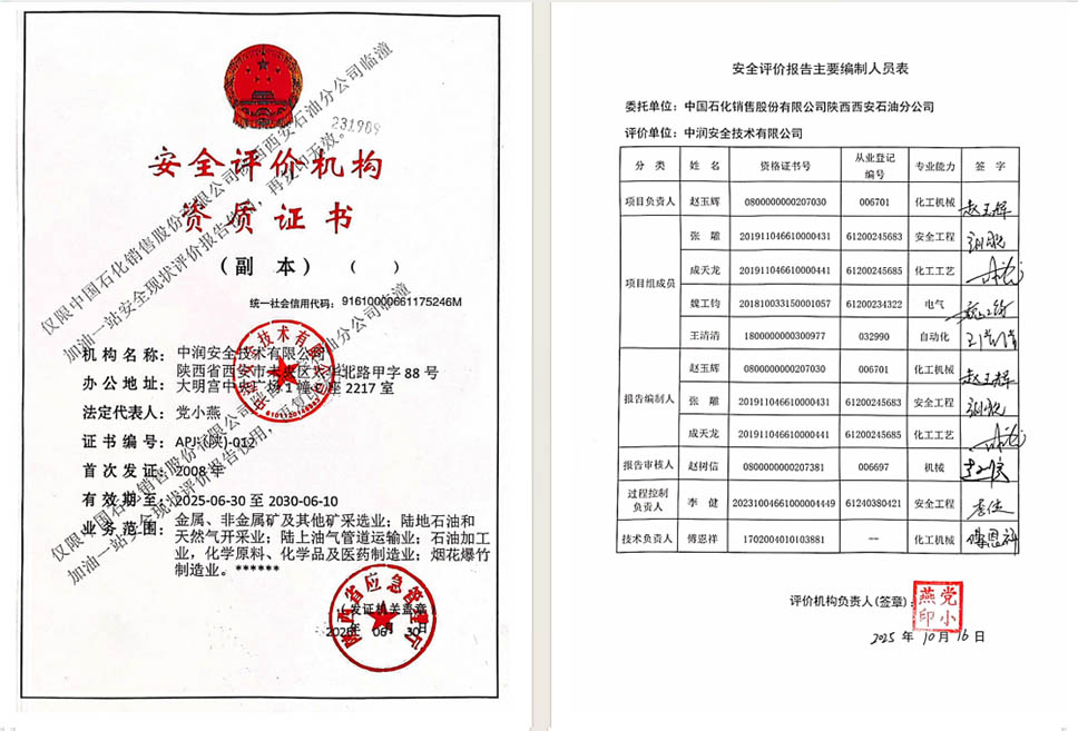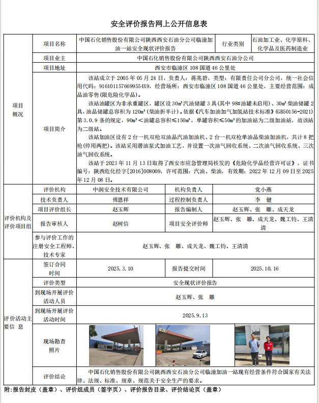中国石化销售股份有限公司陕西西安石油分公司临潼加油一站安全现状评价报告