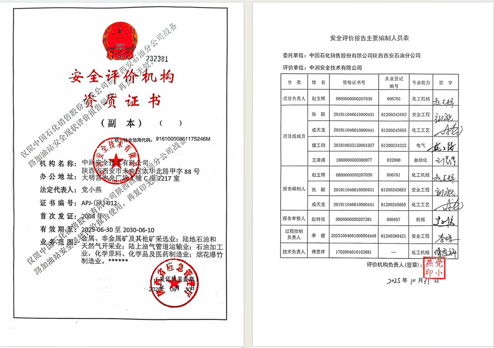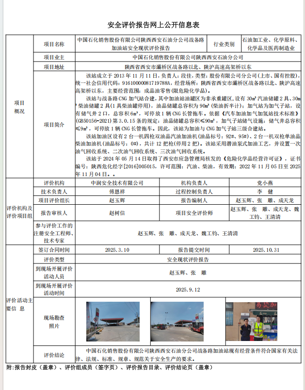 中国石化销售股份有限公司陕西西安石油分公司战备路加油站安全现状评价报告
