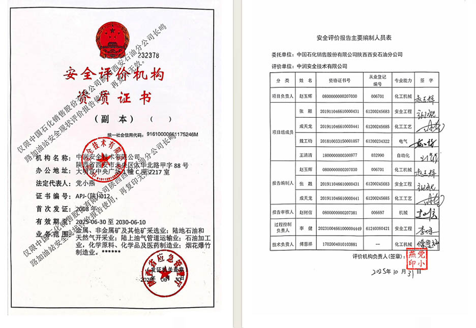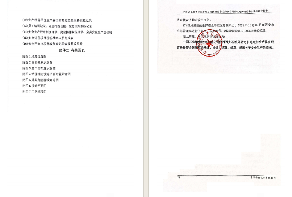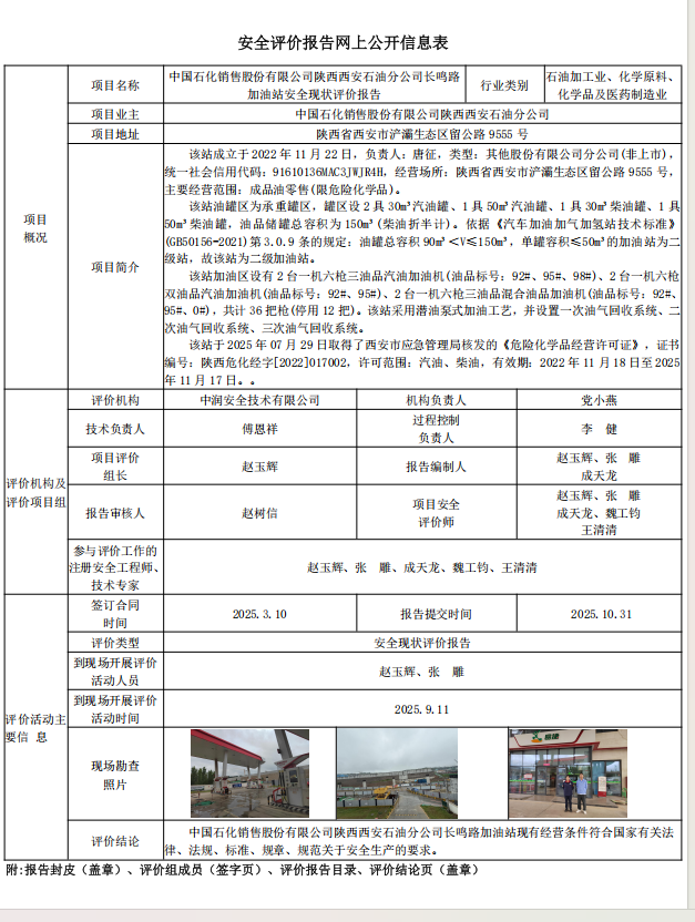 中国石化销售股份有限公司陕西西安石油分公司长鸣路加油站安全现状评价报告
