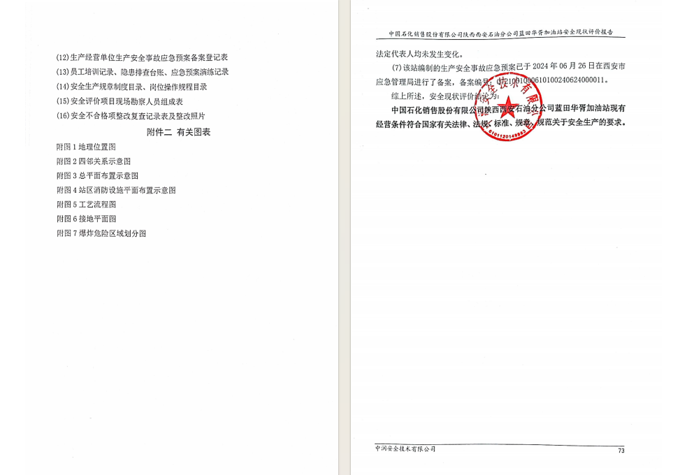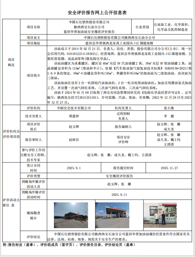 中国石化销售股份有限公司陕西西安石油分公司蓝田华胥加油站安全现状评价报告