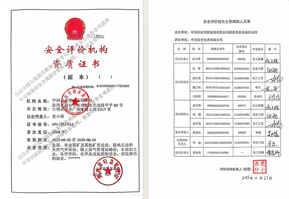 中国石化销售股份有限公司陕西西安石油分公司豁口加油站安全现状评价报告