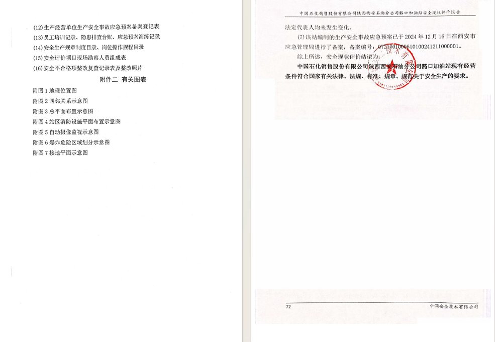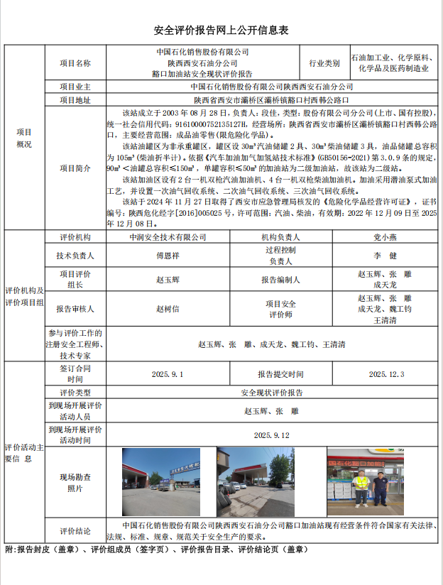中国石化销售股份有限公司陕西西安石油分公司豁口加油站安全现状评价报告