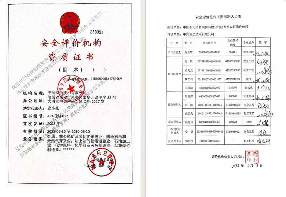 中国石化销售股份有限公司陕西西安石油分公司迎宾路加油站安全现状评价报告