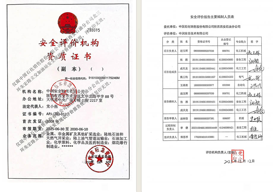 中国石化销售股份有限公司陕西西安石油分公司迎宾路加油站安全现状评价报告