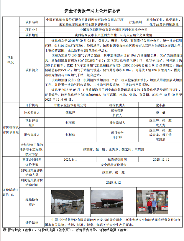 中国石化销售股份有限公司陕西西安石油分公司北三环朱宏路立交加油站安全现状评价报告