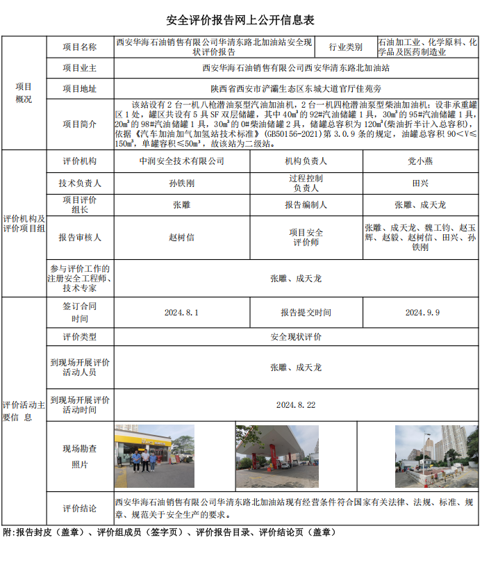 西安华海石油销售有限公司华清东路北加油站安全现状评价报告