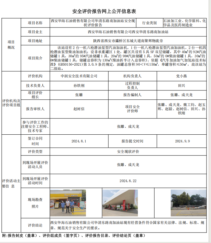 西安华海石油销售有限公司华清东路南加油站安全现状评价报告
