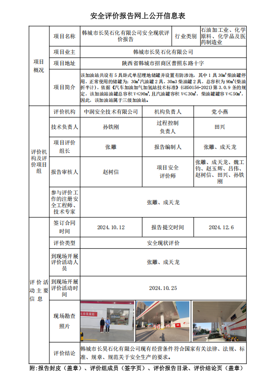 韩城银鑫实业发展有限公司银鑫加油站安全现状评价报告