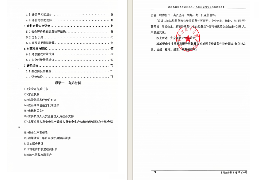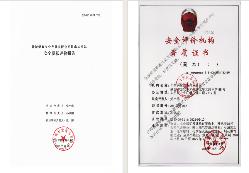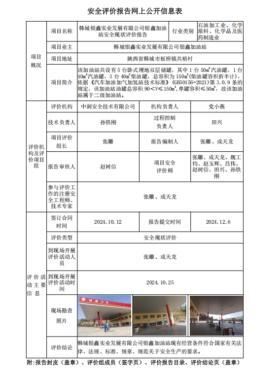 韩城银鑫实业发展有限公司银鑫加油站安全现状评价报告