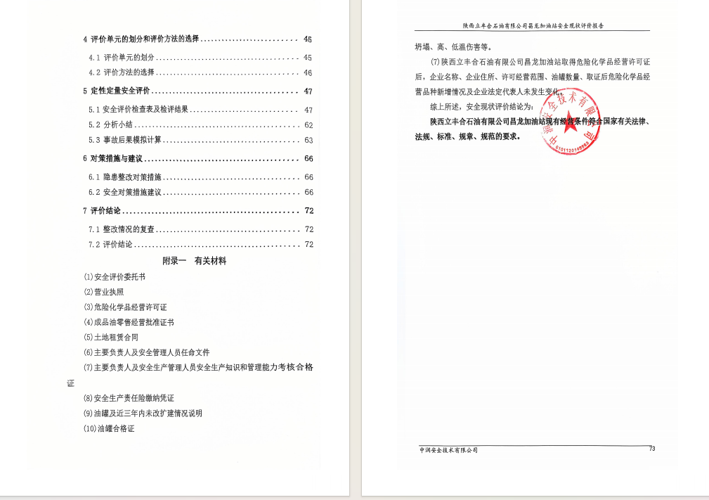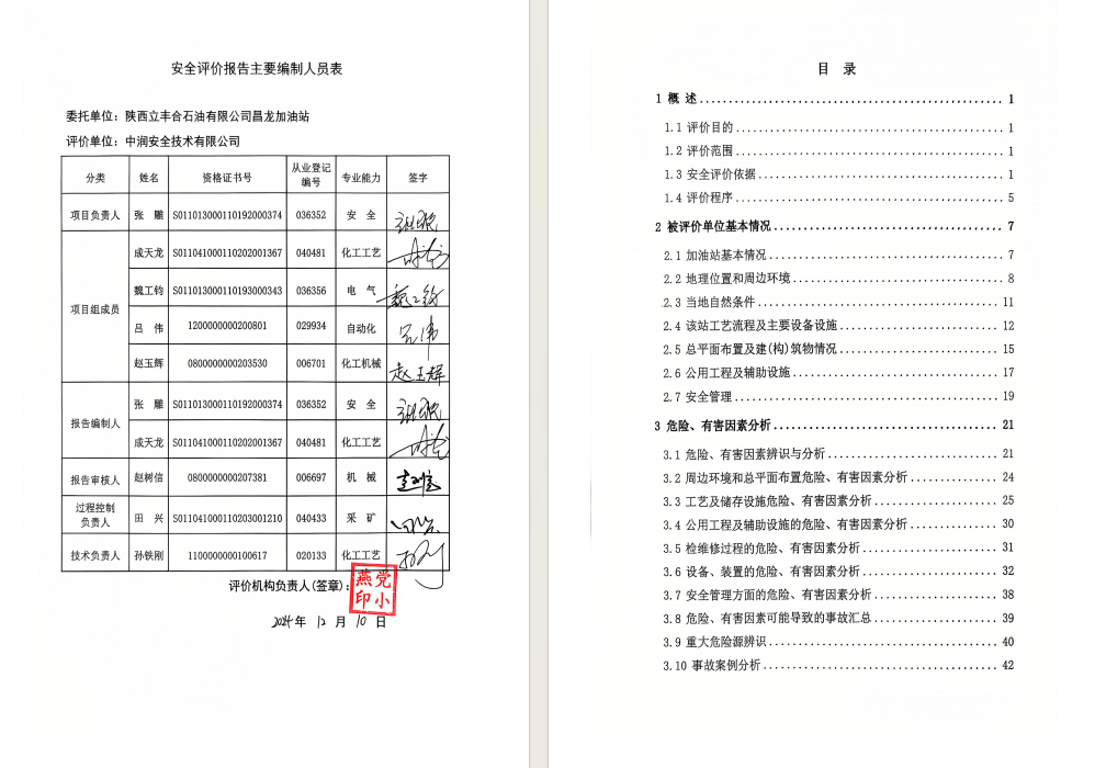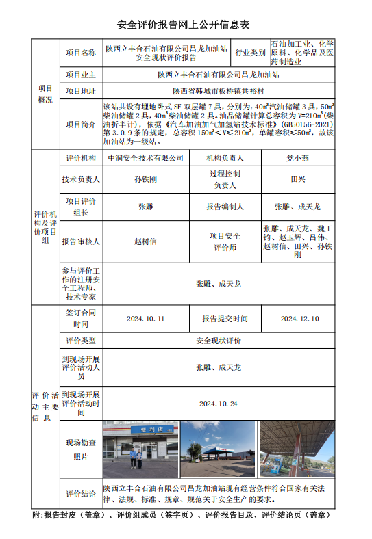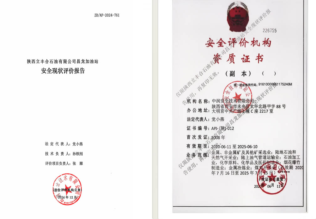 陕西立丰合石油有限公司昌龙加油站安全现状评价报告