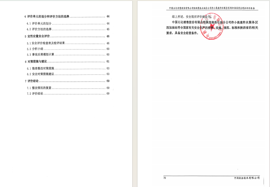 中国石化销售股份有限公司陕西商洛石油分公司柞小高速柞水服务区东加油站安全现状评价报告