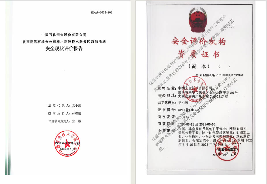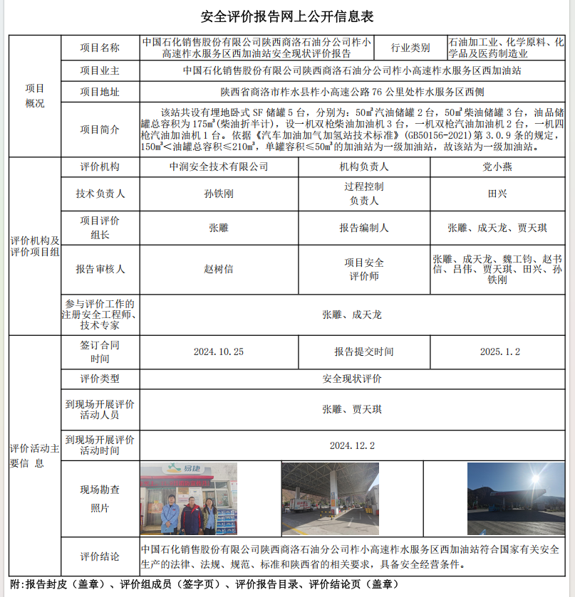 中国石化销售股份有限公司陕西商洛石油分公司柞小高速柞水服务区西加油站安全现状评价报告