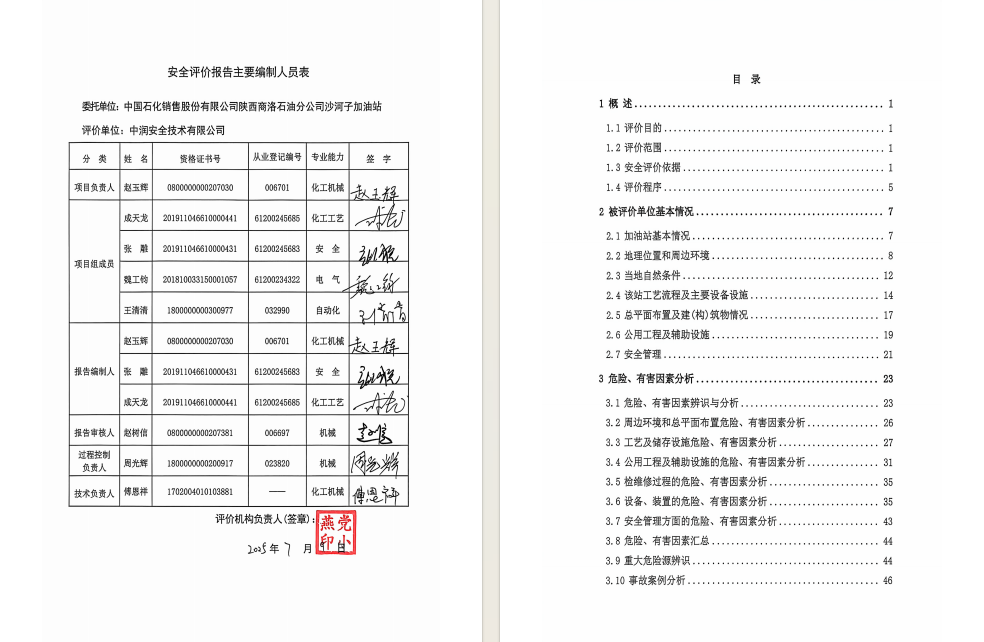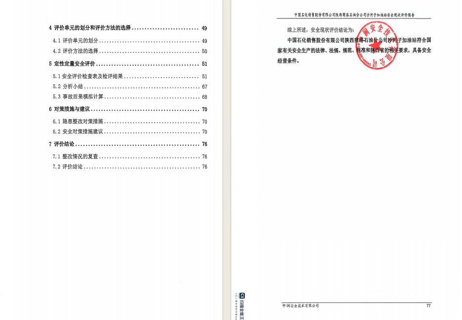 中国石化销售股份有限公司陕西商洛石油分公司沙河子加油站安全现状评价报告