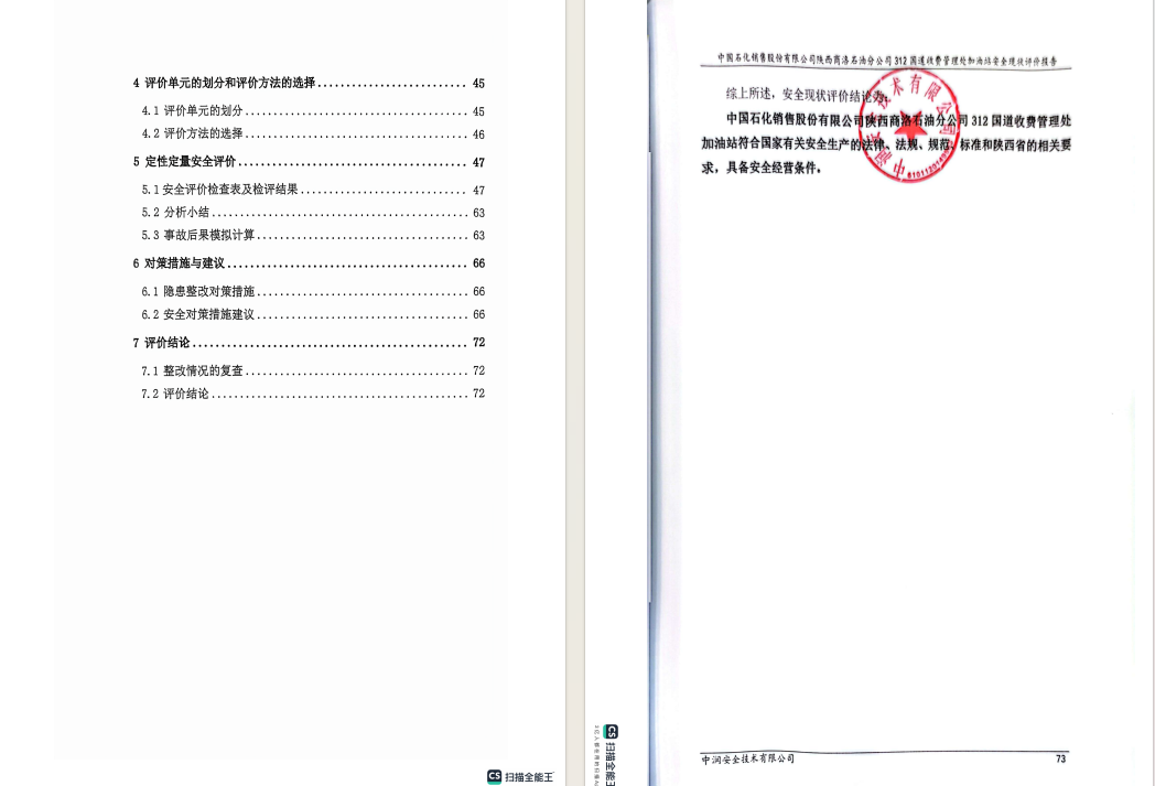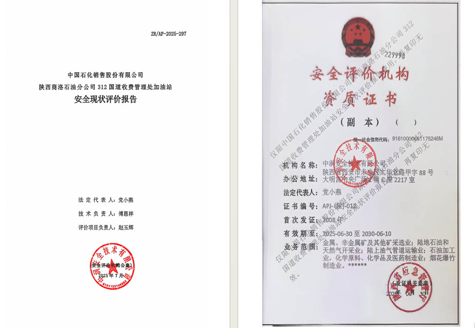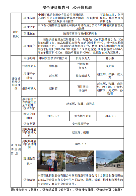 中国石化销售股份有限公司陕西商洛石油分公司312国道收费管理处加油站安全现状评价报告