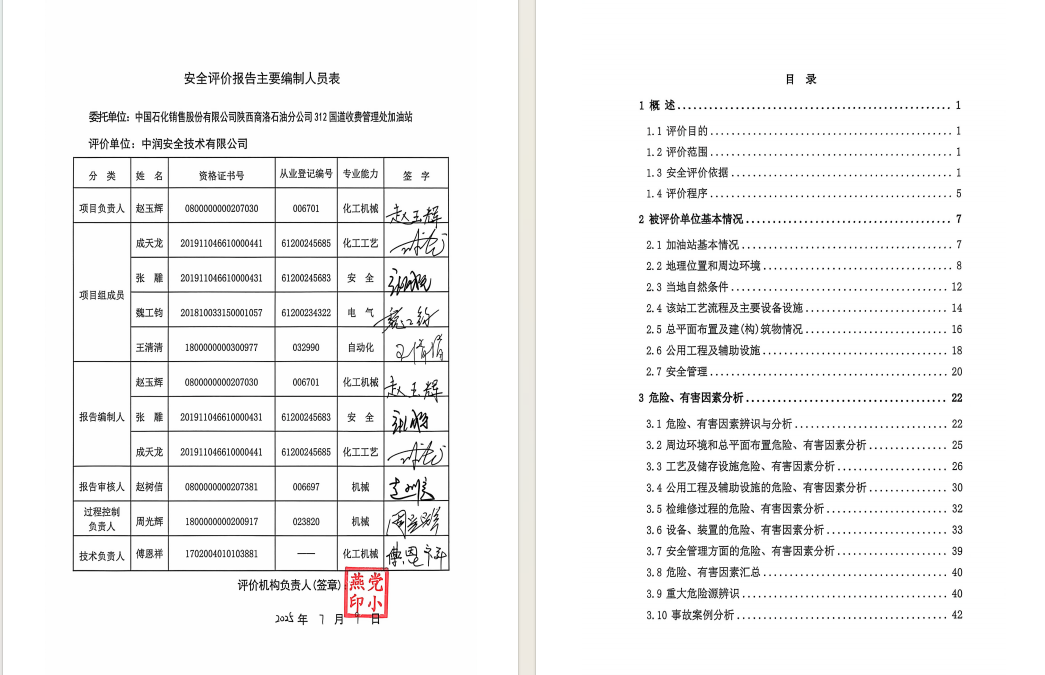 中国石化销售股份有限公司陕西商洛石油分公司沙河子加油站安全现状评价报告