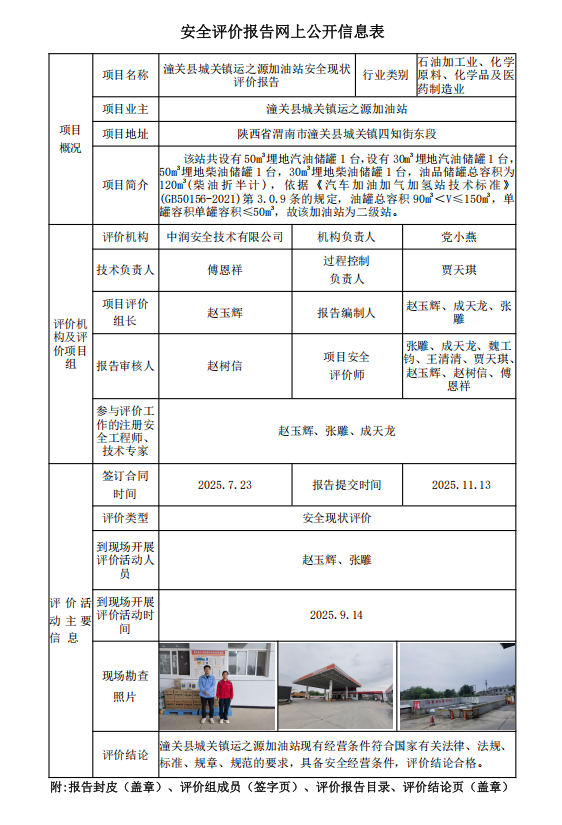 潼关县城关镇运之源加油站安全现状评价报告
