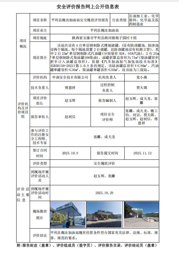 旬阳市金属机电化工有限公司关口加油站安全现状评价报告