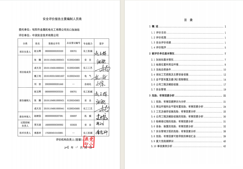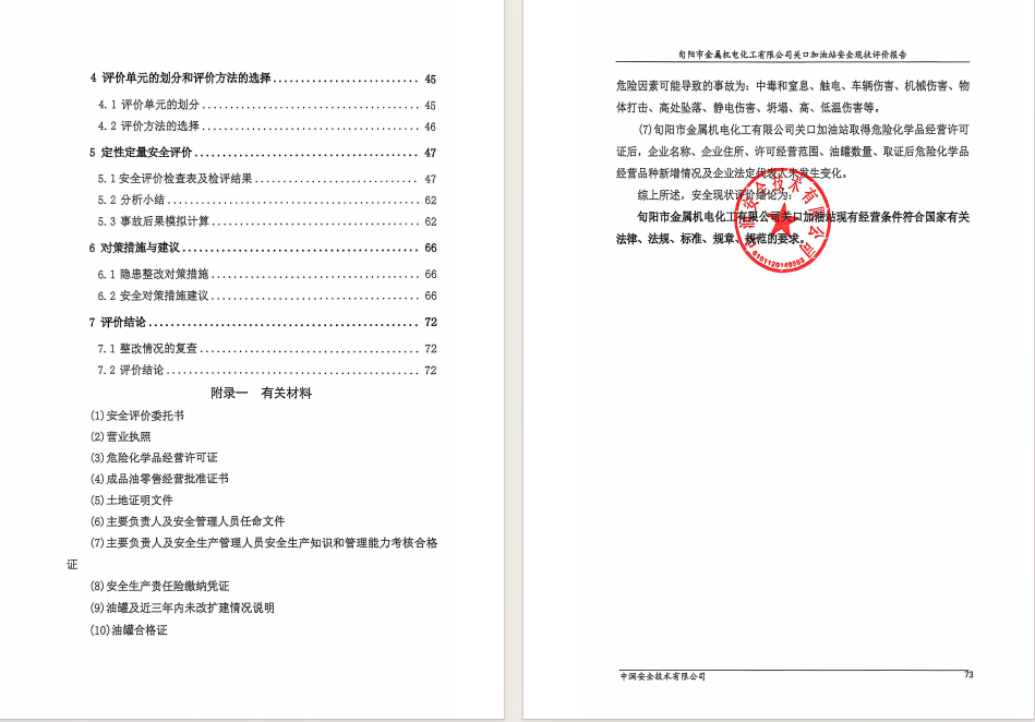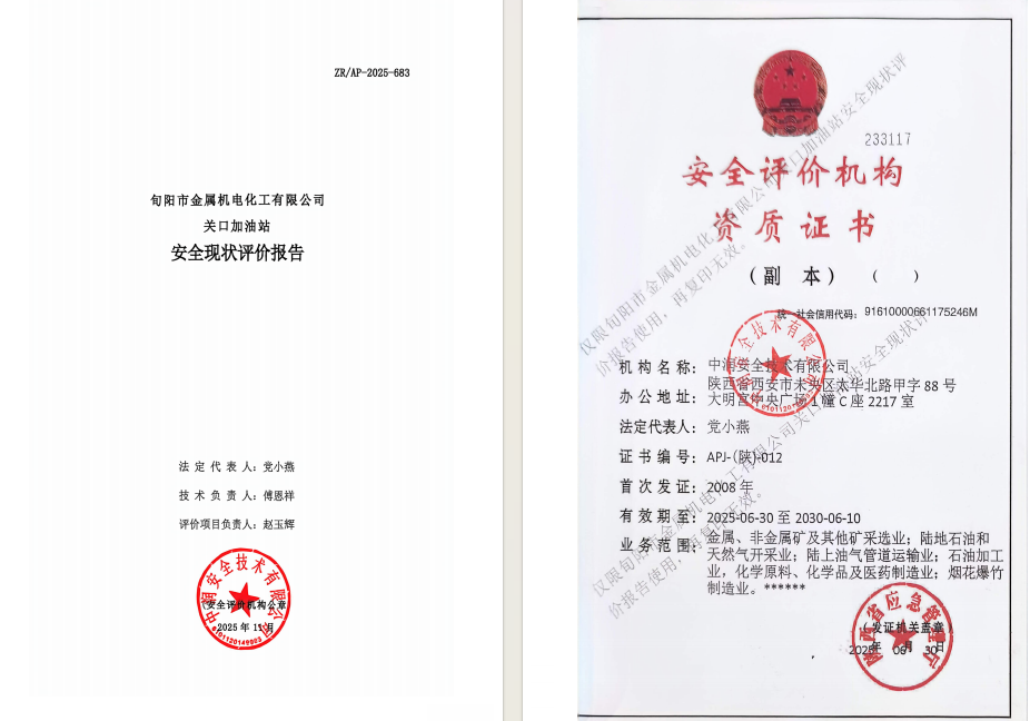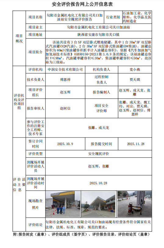 旬阳市金属机电化工有限公司关口加油站安全现状评价报告