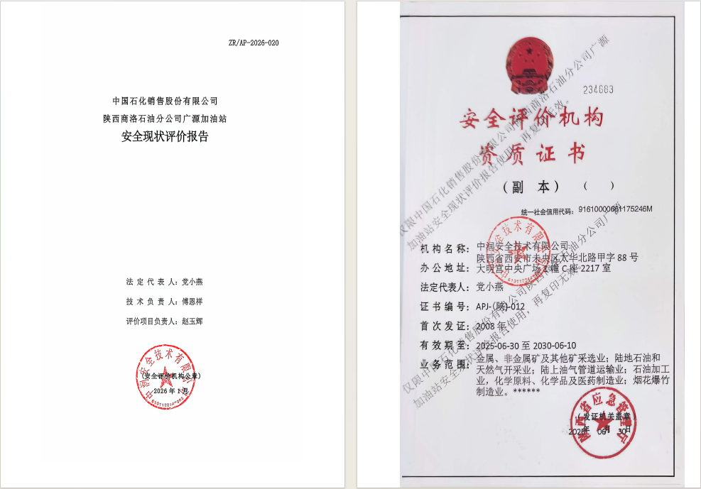 中国石化销售股份有限公司陕西西安石油分公司草临路加油站安全现状评价报告