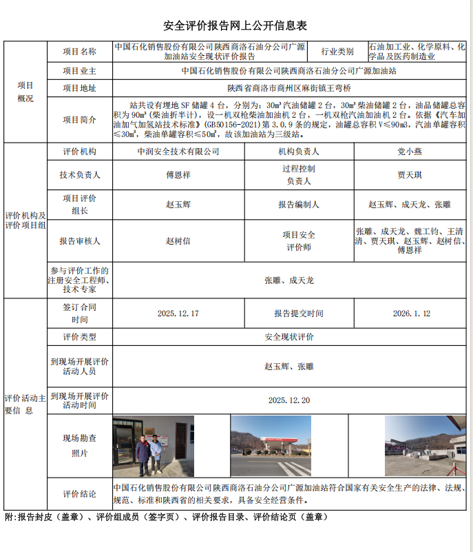 中国石化销售股份有限公司陕西商洛石油分公司广源 加油站安全现状评价报告