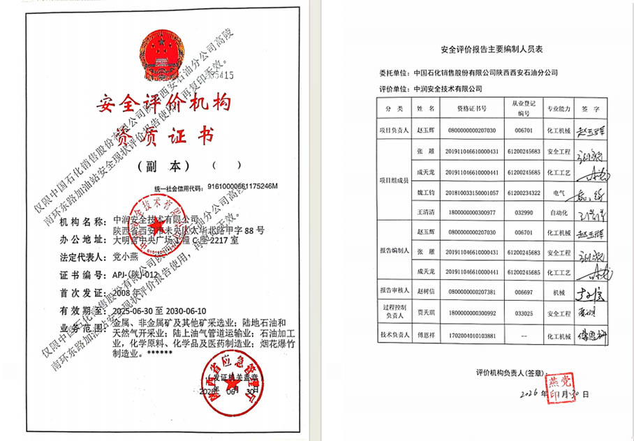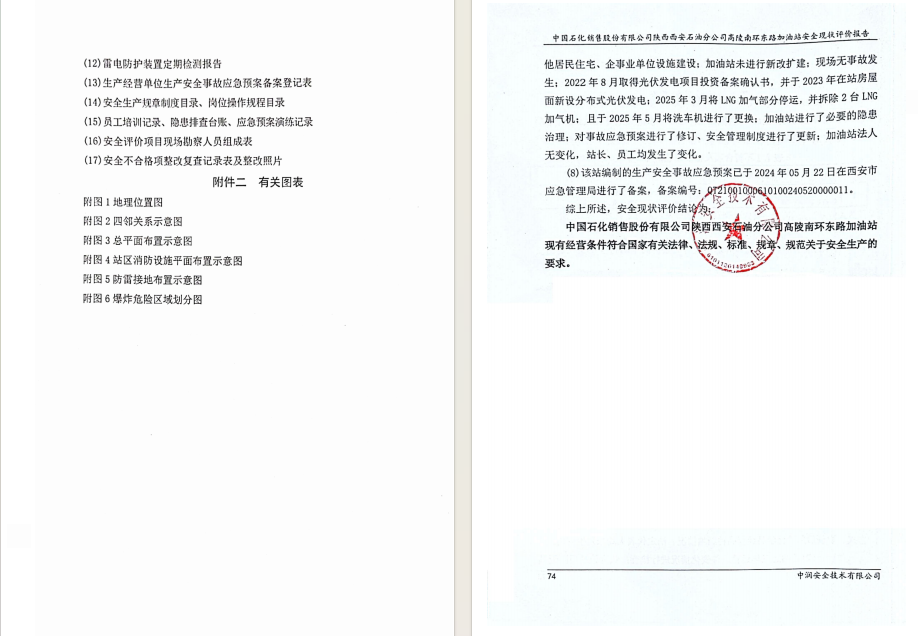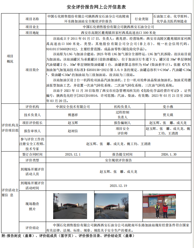 中国石化销售股份有限公司陕西西安石油分公司高陵南环东路加油站安全现状评价报告