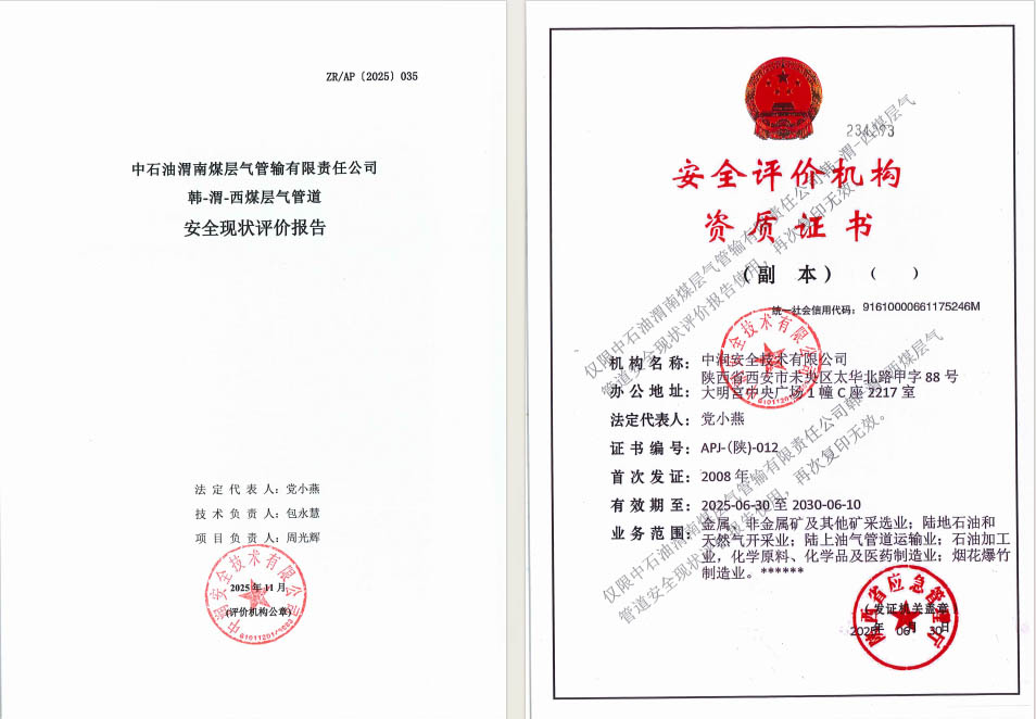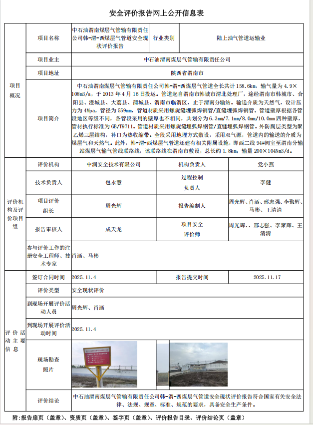 中石油渭南煤层气管输有限责任公司韩-渭-西煤层气管道安全现状评价报告