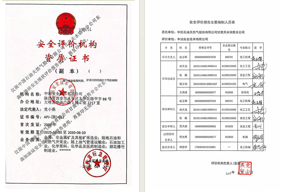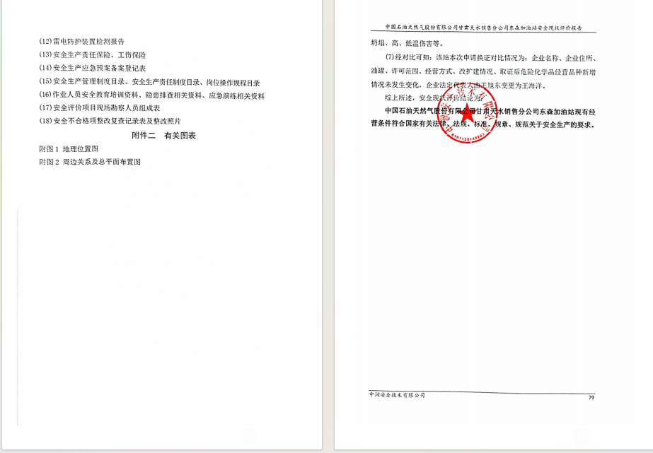 中国石油天然气股份有限公司甘肃庆阳销售分公司合水县城加油站安全现状评价报告