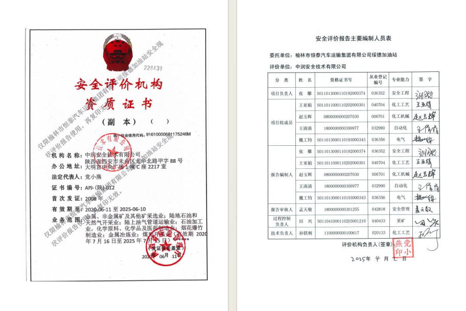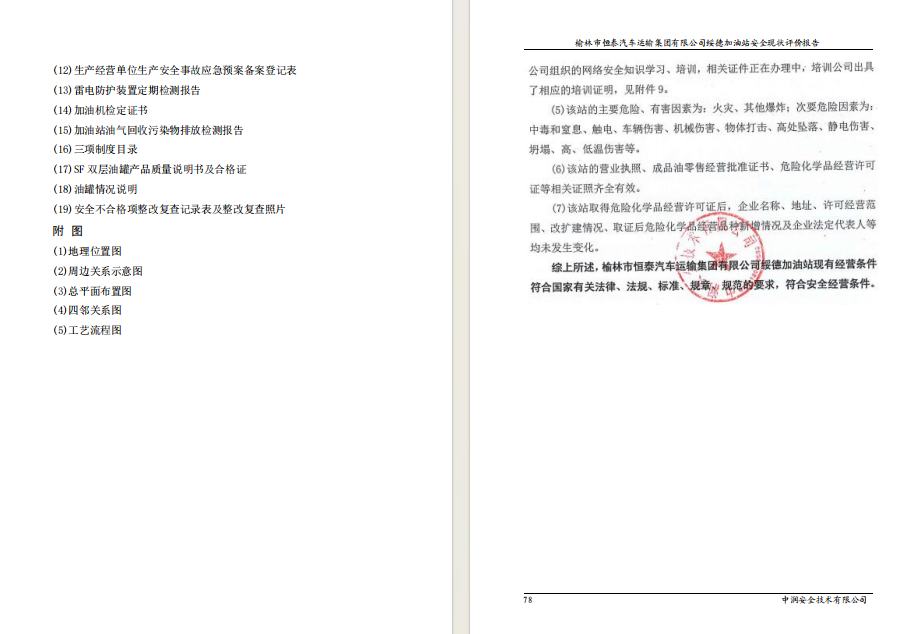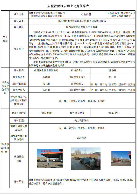 榆林市恒泰汽车运输集团有限公司绥德加油站安全现状评价报告