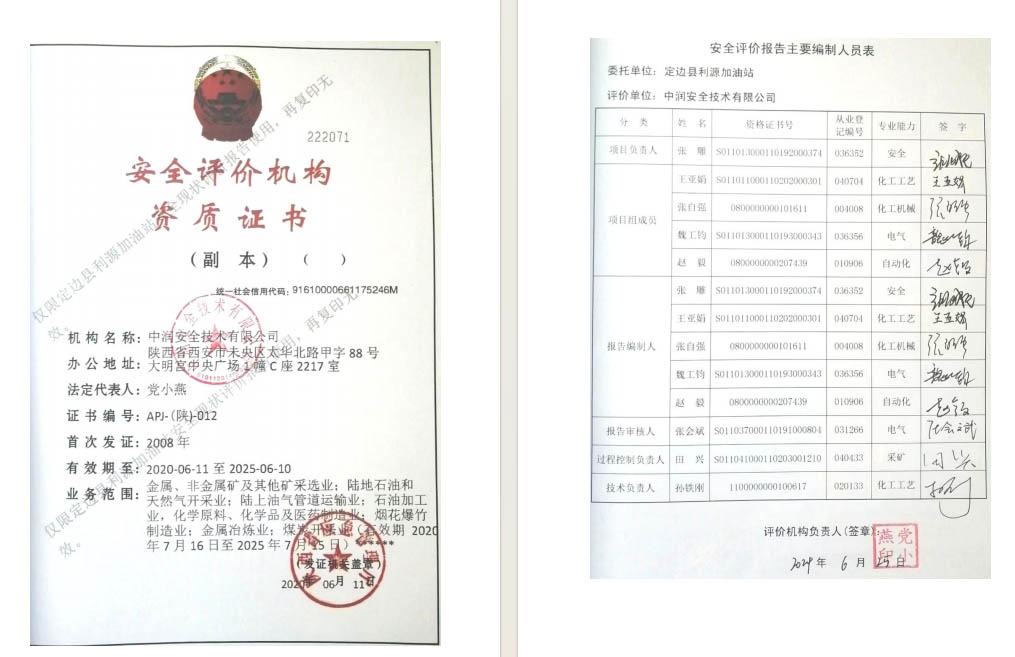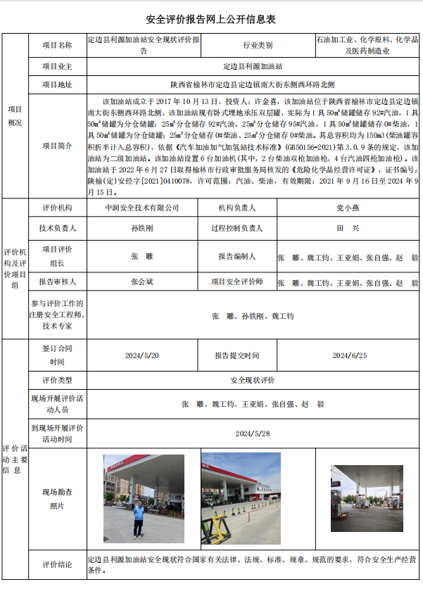 定边县利源加油站安全现状评价报告