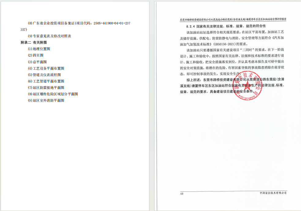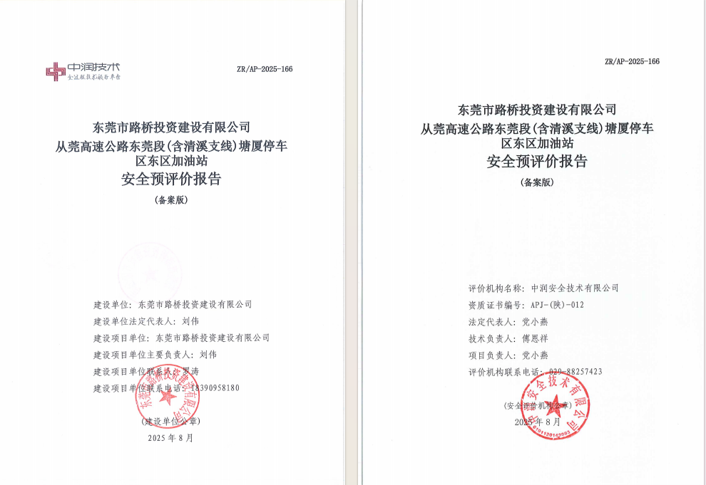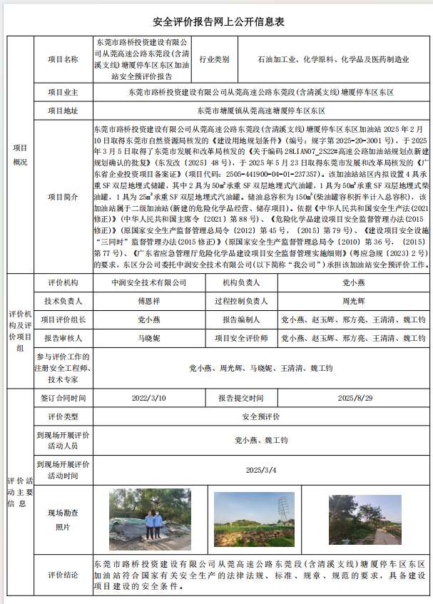 东莞市路桥投资建设有限公司从莞高速公路东莞段(含清溪支线)塘厦停车区东区加油站安全预评价报告