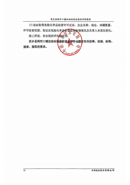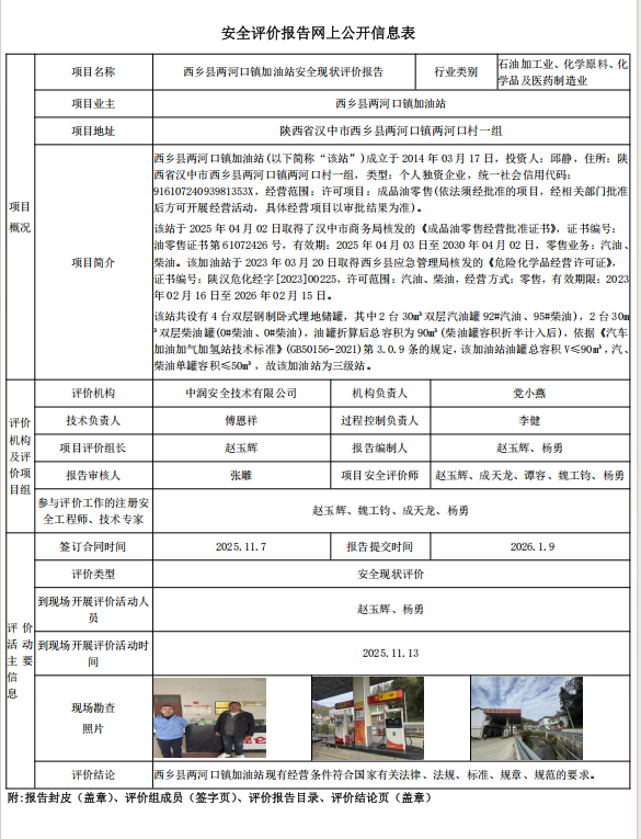 西乡县两河口镇加油站安全现状评价报告
