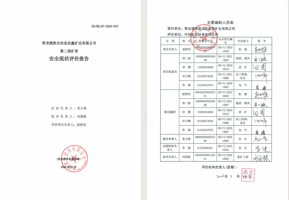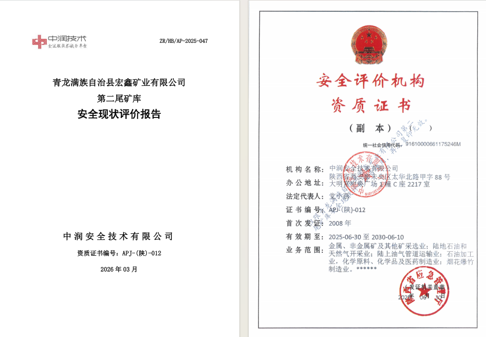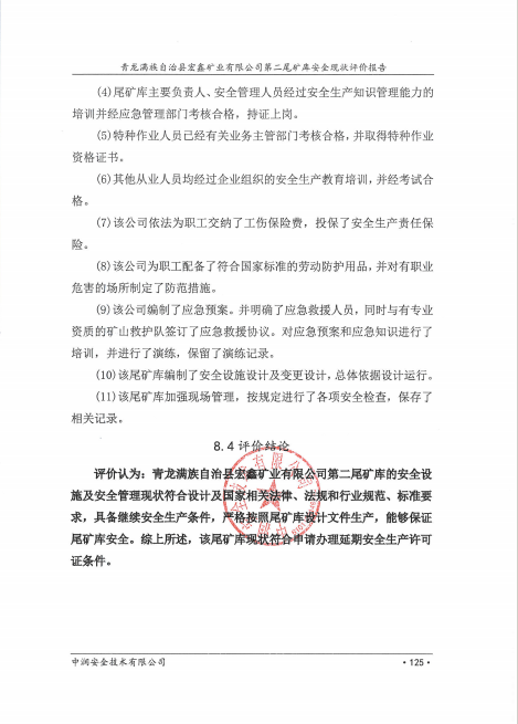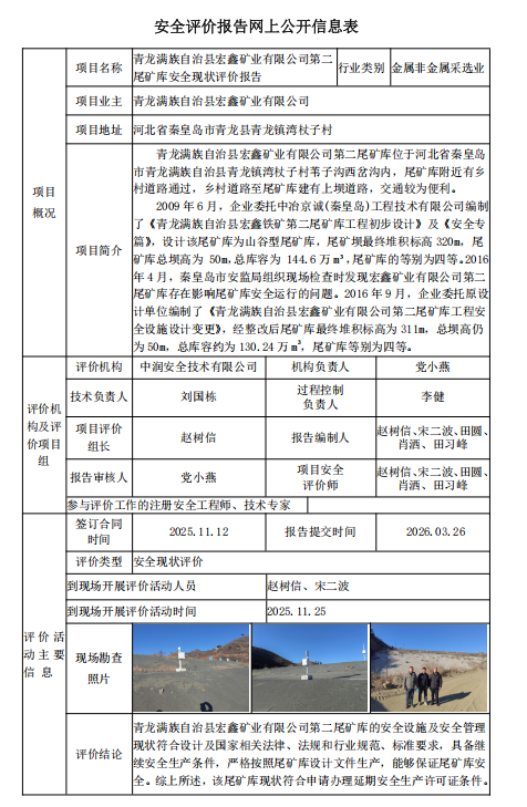青龙满族自治县宏鑫矿业有限公司第二尾矿库安全现状评价报告